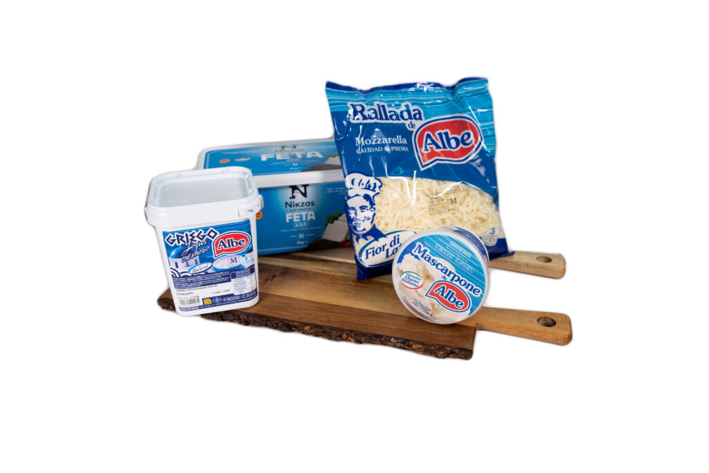 Ofrecemos una amplia variedad de quesos nacionales y europeos con IGP, así como otros productos lácteos de alta calidad pensados para el sector profesional.